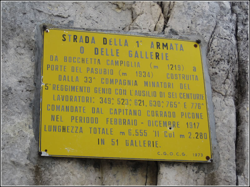 Questo cartello, posto nei pressi delle "Porte del Pasubio" spiega in maniera più che esauriente, le caratteristiche del percorso.