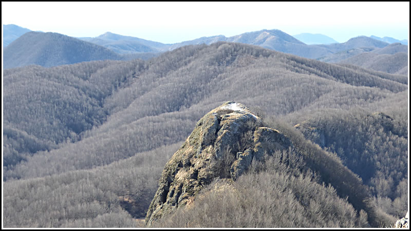 La vetta del Gifarco. L'accesso avviene nel canale alberato che scende leggermente a destra dalla Vetta.