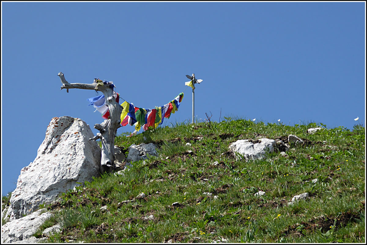 Dopo un lungo tratto di salita, prima nel bosco e poi su una assolata spalla, salita per altro pochissimo fotogenica, sbuchiamo nei pressi di un colletto situato fara il Monte Due Mani e Lo Zucco di Desio m. 1651